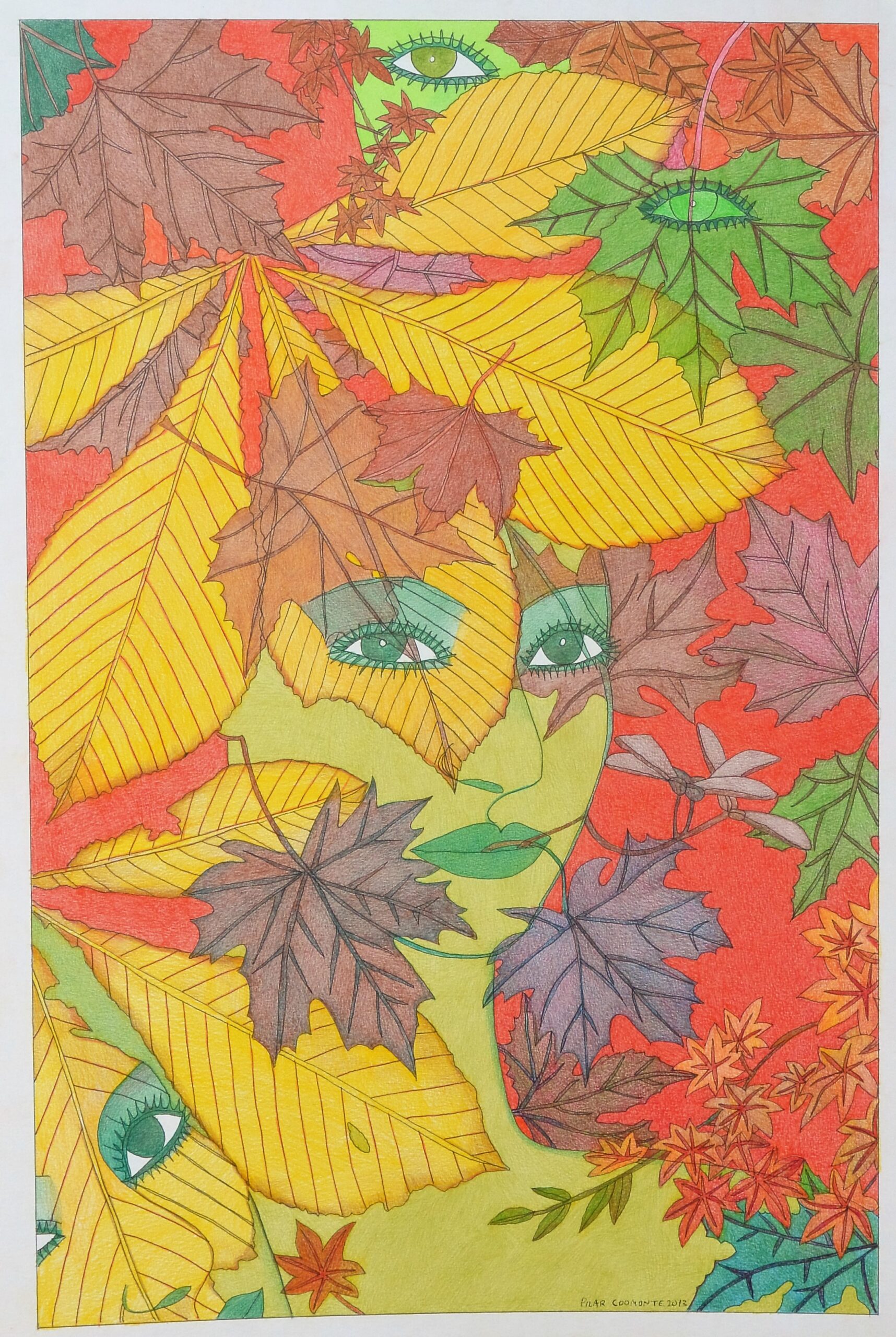 Pilar Coomonte 2013, Las hojas huyen en bandadas, dibujo original técnica mixta, 62,50×42,50 cms.