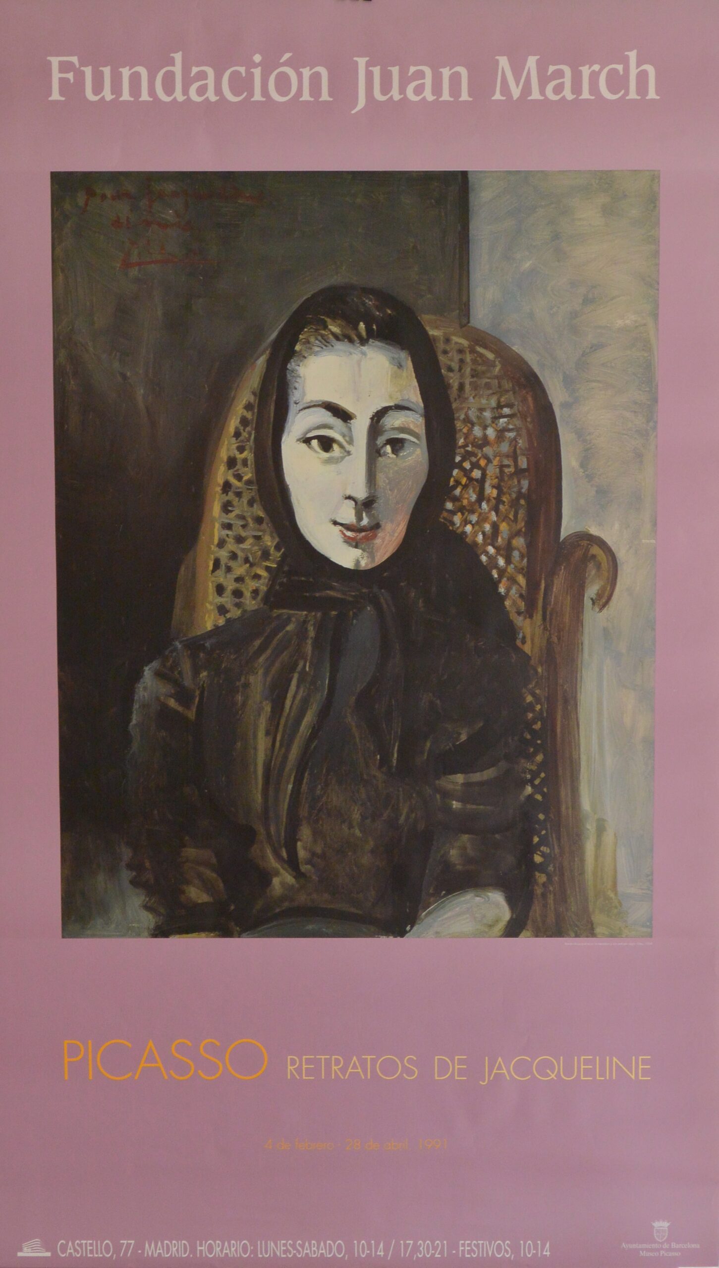 Pablo Picasso, Retrato de Jacqueline II, cartel original exposición en la Fundación Juan March en 1991, 94×54 cms.