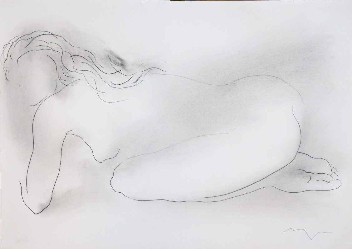 Fernando Mignoni, Mujer joven postrada, dibujo original lápiz papel, 50×70 cms.