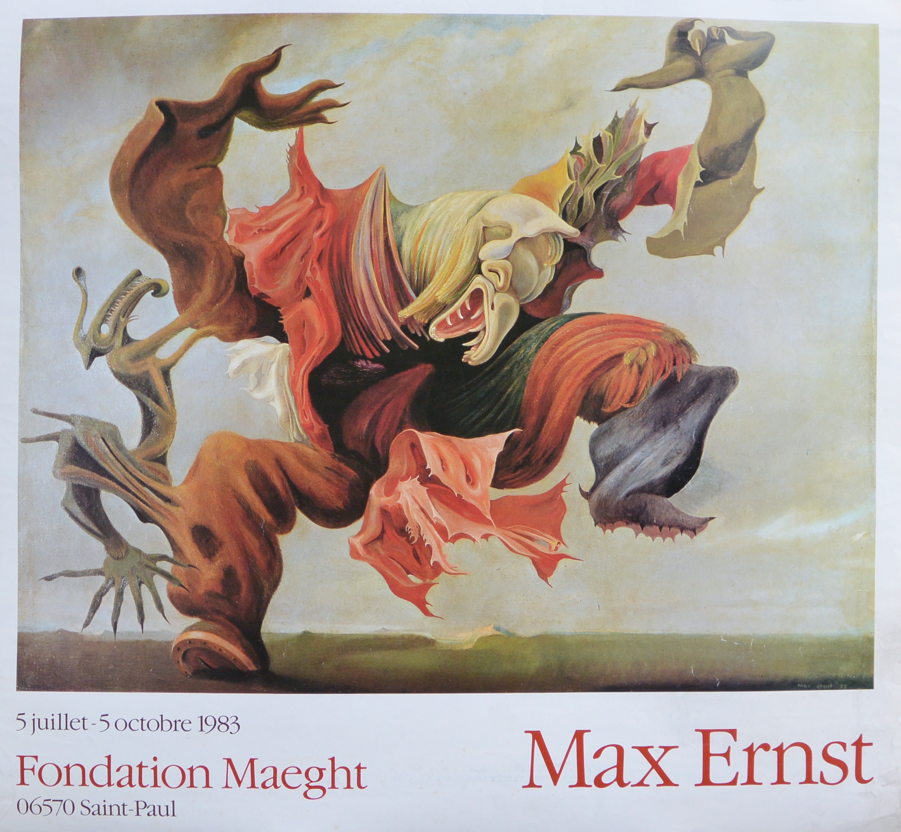 Max Erns, L´Ange du foyer, cartel original exposición en la Fondation Maeght en 1983, 60×65 cms.