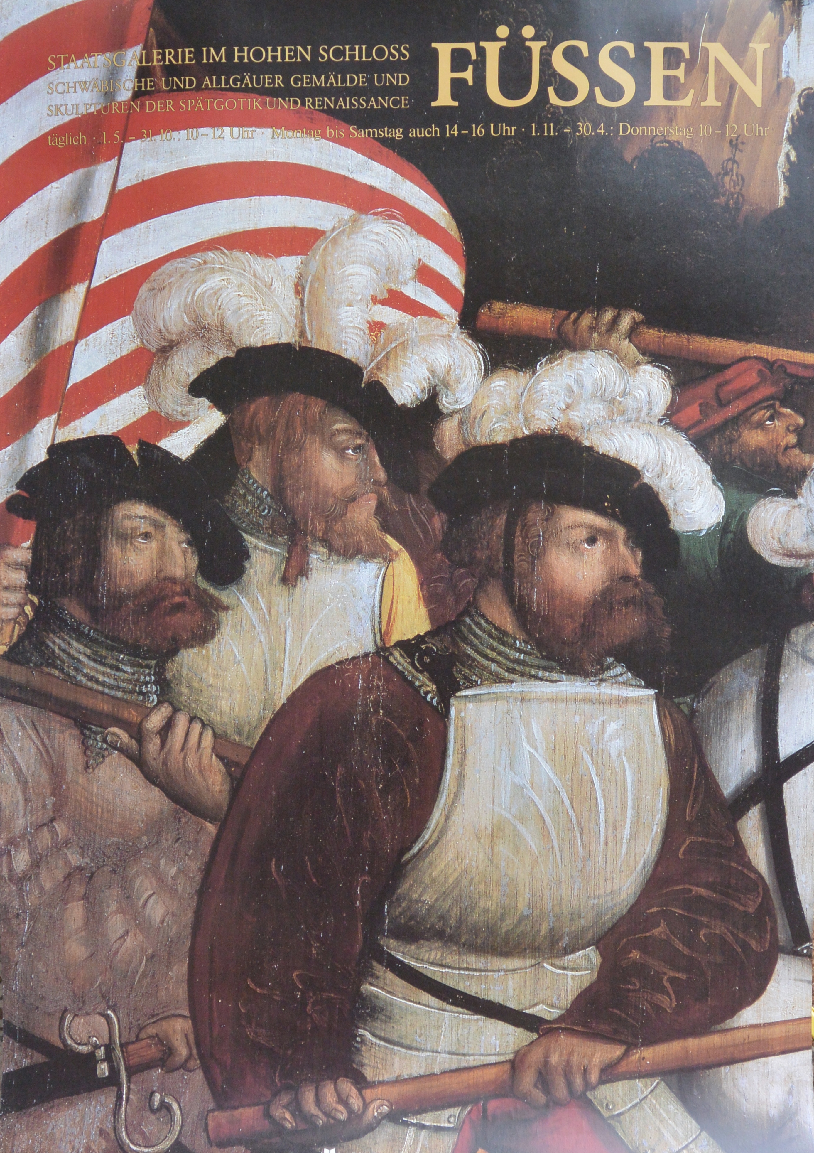 Pintura gótica y renacimiento, der krieg oberschwäbisch, cartel original exposición en Füssen, 85×59 cms.