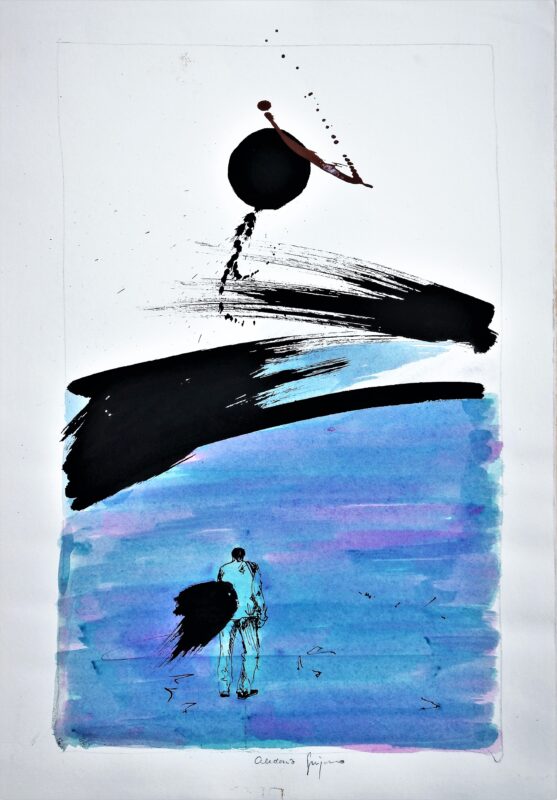 Celedonio Guijorro, Premonición, pintura original acrílico sobre papel, 50×35 cms.