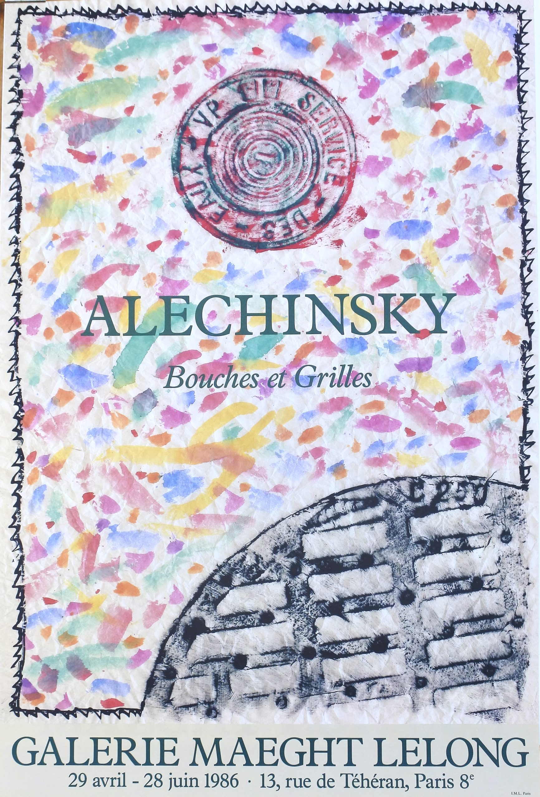 Pierre Alechinsky, Bouches et grilles, cartel original exposición en Galerie Maeght Lelong Paris en 1986, 74×50 cms.
