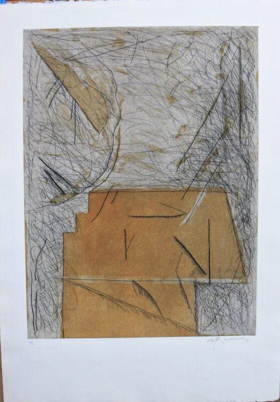 Albert Ráfols-Casamada 1985, Abril – 5, Grabado aguafuerte, edición 75 ejemplares, numerado datado y firmado a lápiz, plancha 76×57 cms. y papel 100×70 cms.