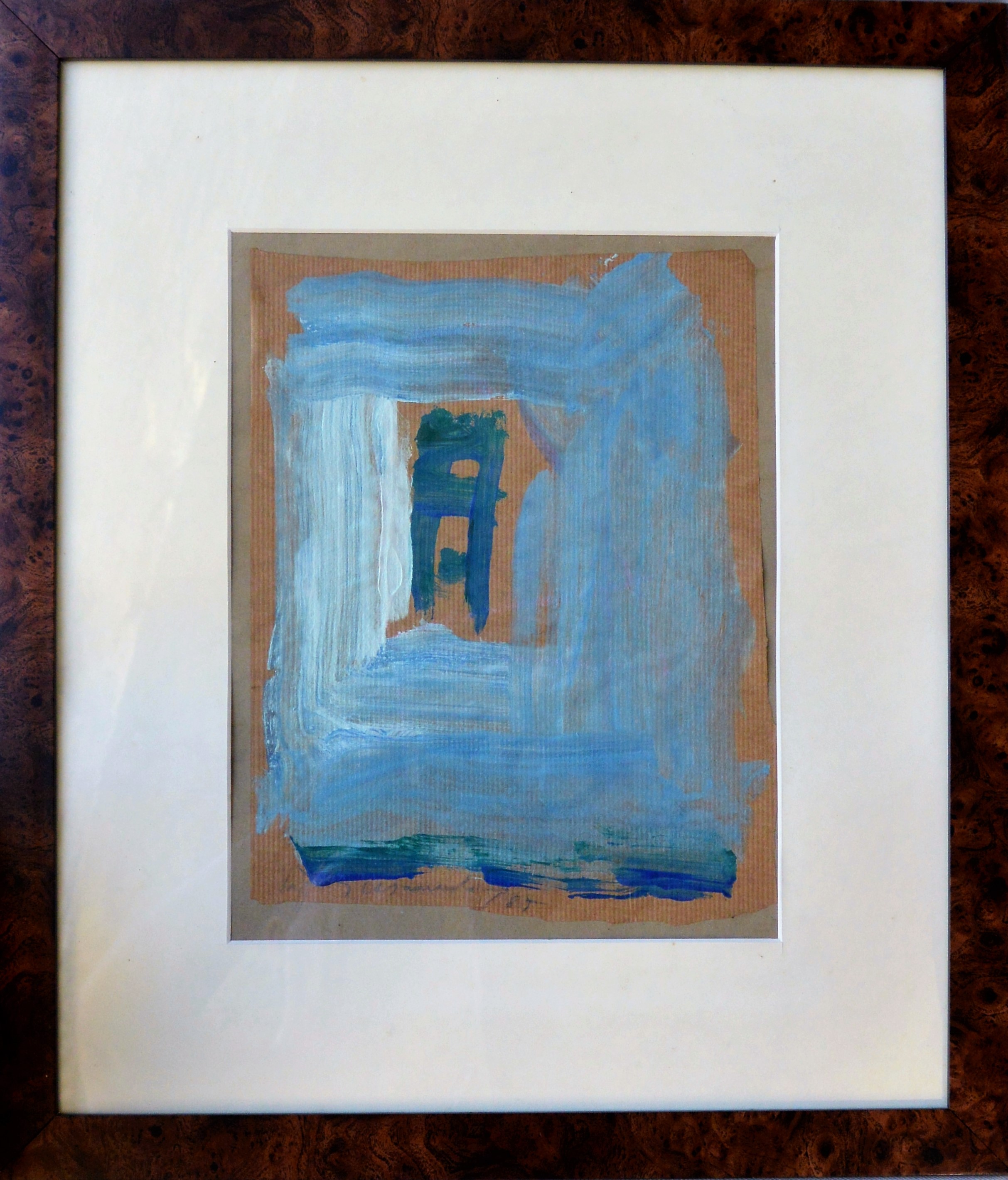 Rafols Casamada Albert 1985, Composición sin título, acrilico papel kraft, enmarcado, obra 29×22 cms. y marco 52×45 cms. Marco incluido