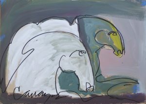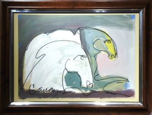 Alberto Cavazos, Caballo blanco, pintura original acrílico sobre cartulina, enmarcado, pintura 50×70 cms. y marco 91×69 cms.