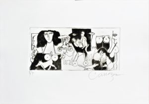 Alberto Cavazos, Miscelanea, grabado aguafuerte, edición 60 ejemplares, numerado P.T. y firmado a lápiz, plancha 14×30 cms. y papel 35×50 cms.