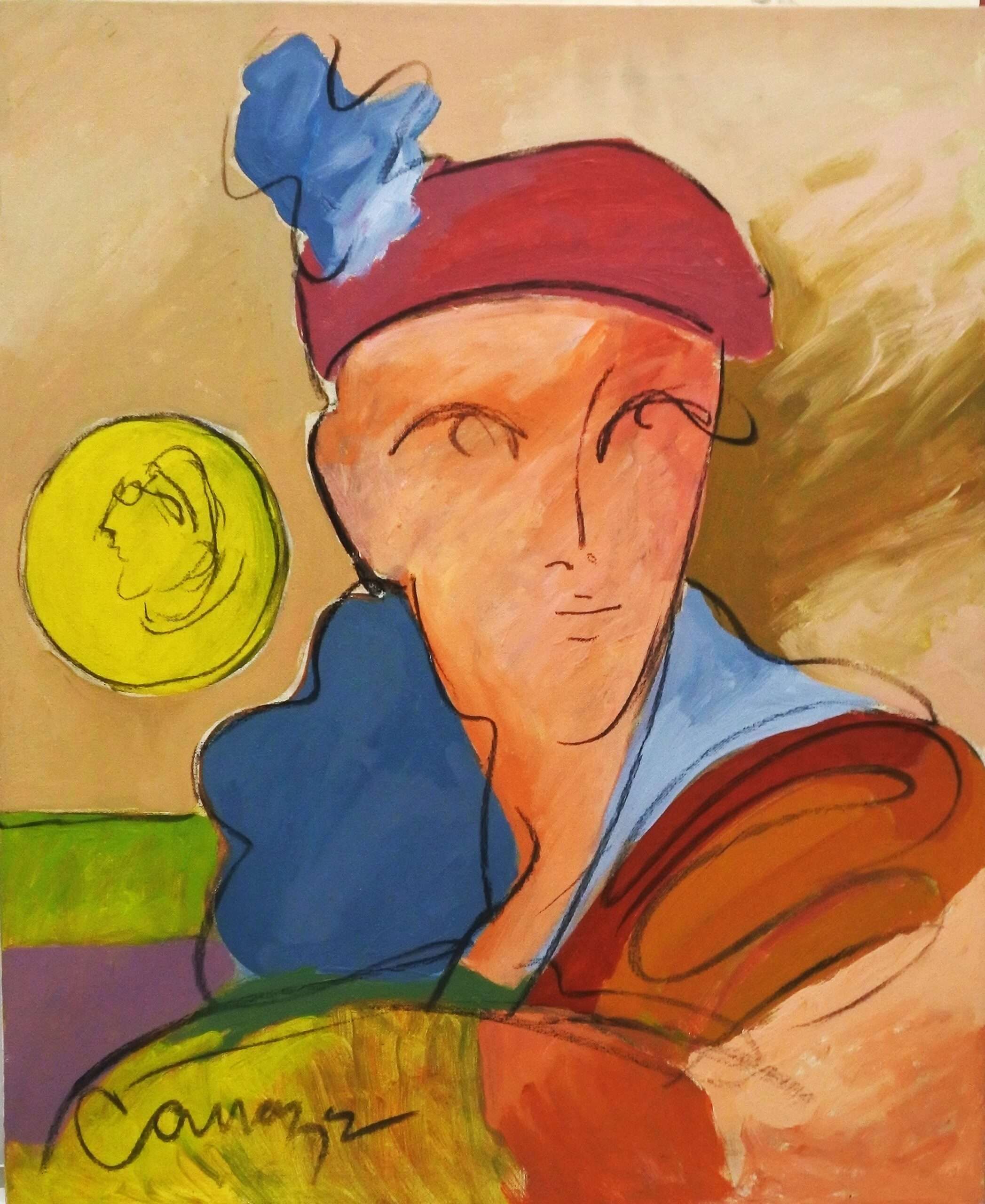 Alberto Cavazos, Sota de oros, serie baraja española, pintura original oleo sobre lienzo, 65×54 cms.