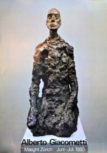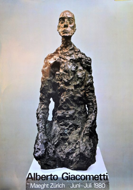 Alberto Giacometti, Bronze sculpture portrait of Eli Lottar III seated, cartel original exposición en Galerie Maeght Zurich en 1980, 70×50 cms.