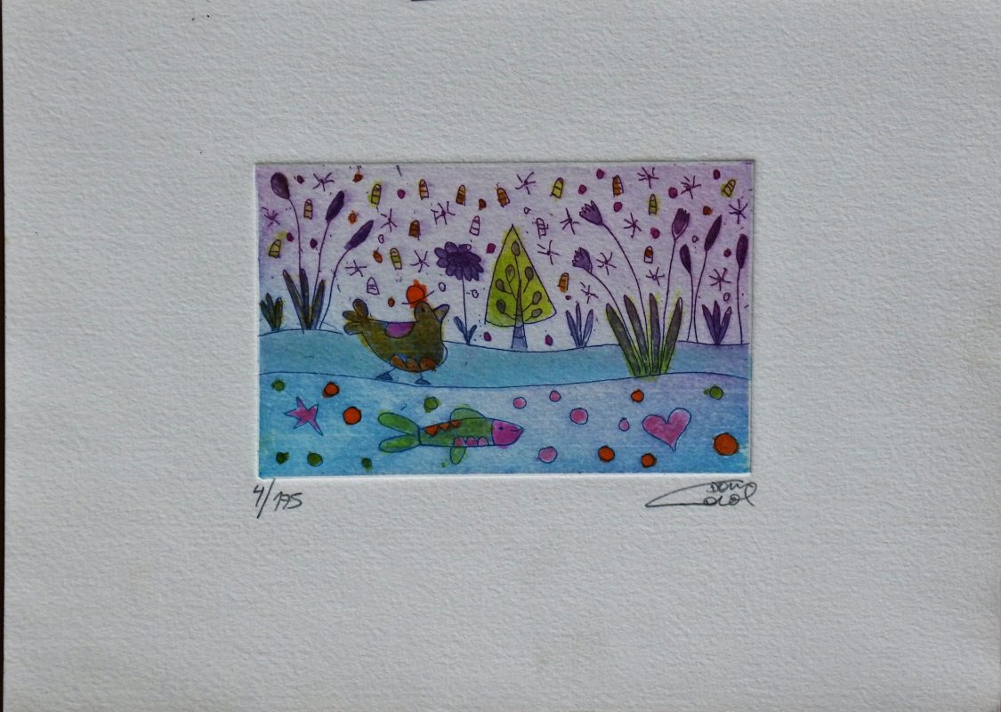 Alexandra Dominguez, Por el camino celeste, grabado, edición 175 ejemplares, numerado y firmado a lápiz, plancha 8×12 y papel 18×25 cms.