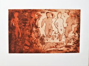 Alfonso Albacete, Figuras, grabado, edición 100 ejemplares, numerado, datado 91 y firmado a lápiz, plancha 36×59 cmes y papel 56×76 cms.