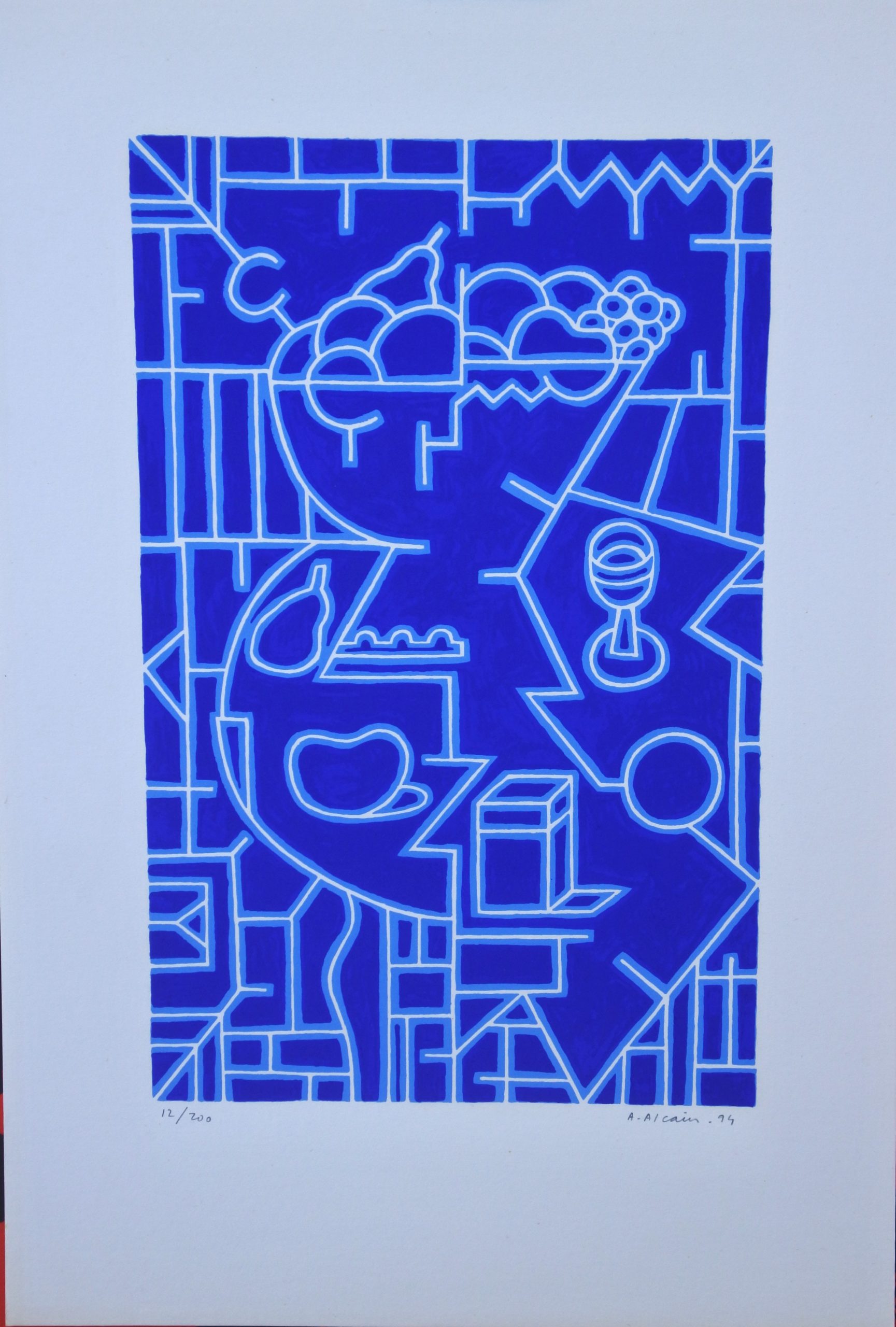 Alfredo Alcaín, Bodegón con copa, 1994, serigrafía, edición 200 ejemplares, datada 94, numerado y firmado a lápiz, 31,50×21 cms.