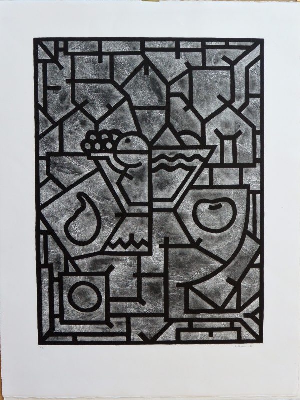Alfredo Alcaín, Bodegón gris, litografía, edición 50 ejemplares, datado 98 numerado h.c. y firmado a lápiz, plancha 51×37,50 cms. y papel 65,50×50 cms.