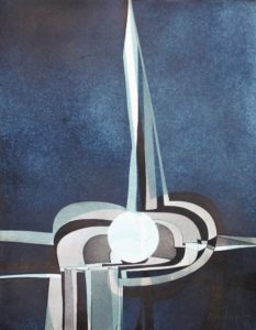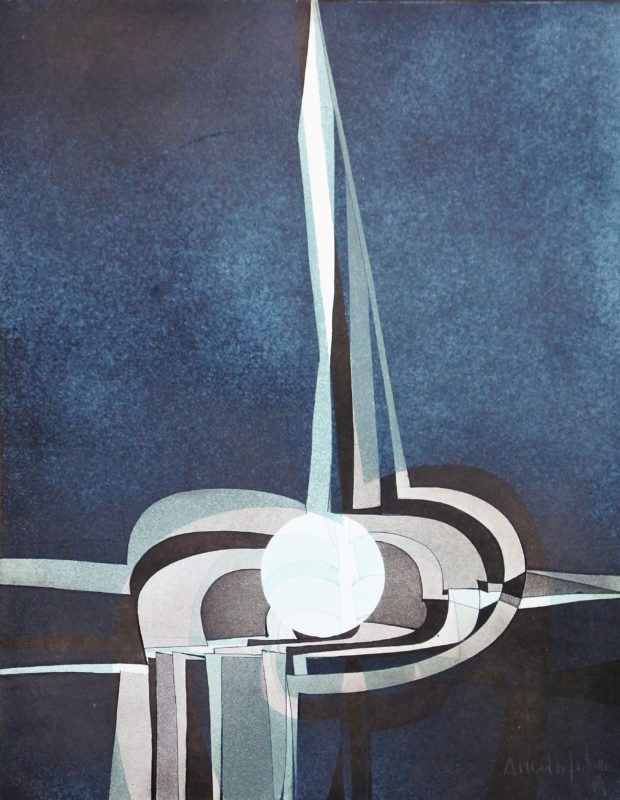 Amadeo Gabino, La noche y la llama VI, grabado aguafuerte, corresponde al libro de San Juan de la Cruz, edición 195 ejemplares, numerado y firmado a lápiz, 48×38 cms.