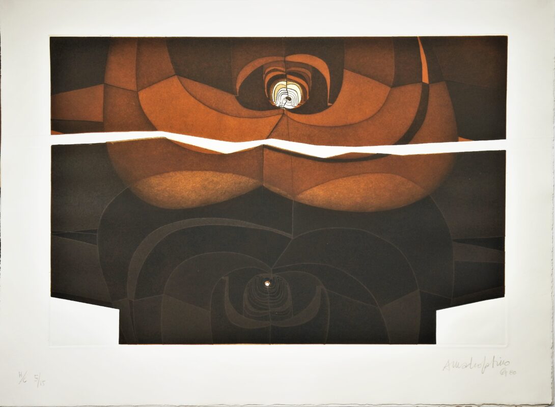Amadeo Gabino, Polifemo, grabado aguafuerte, aguatinta y gofrado, edición 75 ejemplares, numerado, datado 80 y firmado a lápiz, plancha 43×63 cms. y papel 56×76 cms.