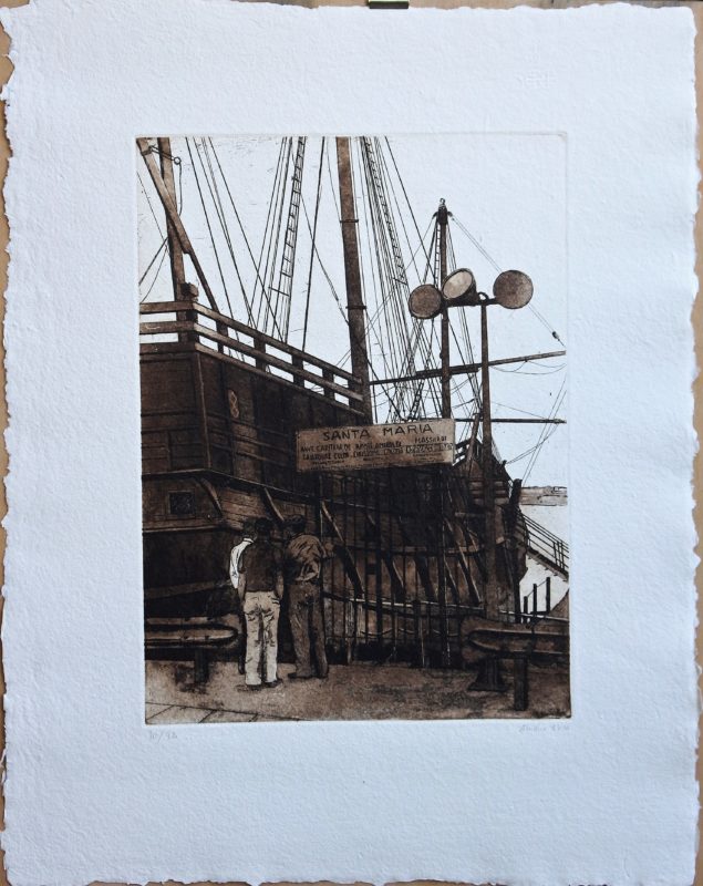Amalia Avia – «Viaje de ida V, la Santa María» grabado aguafuerte