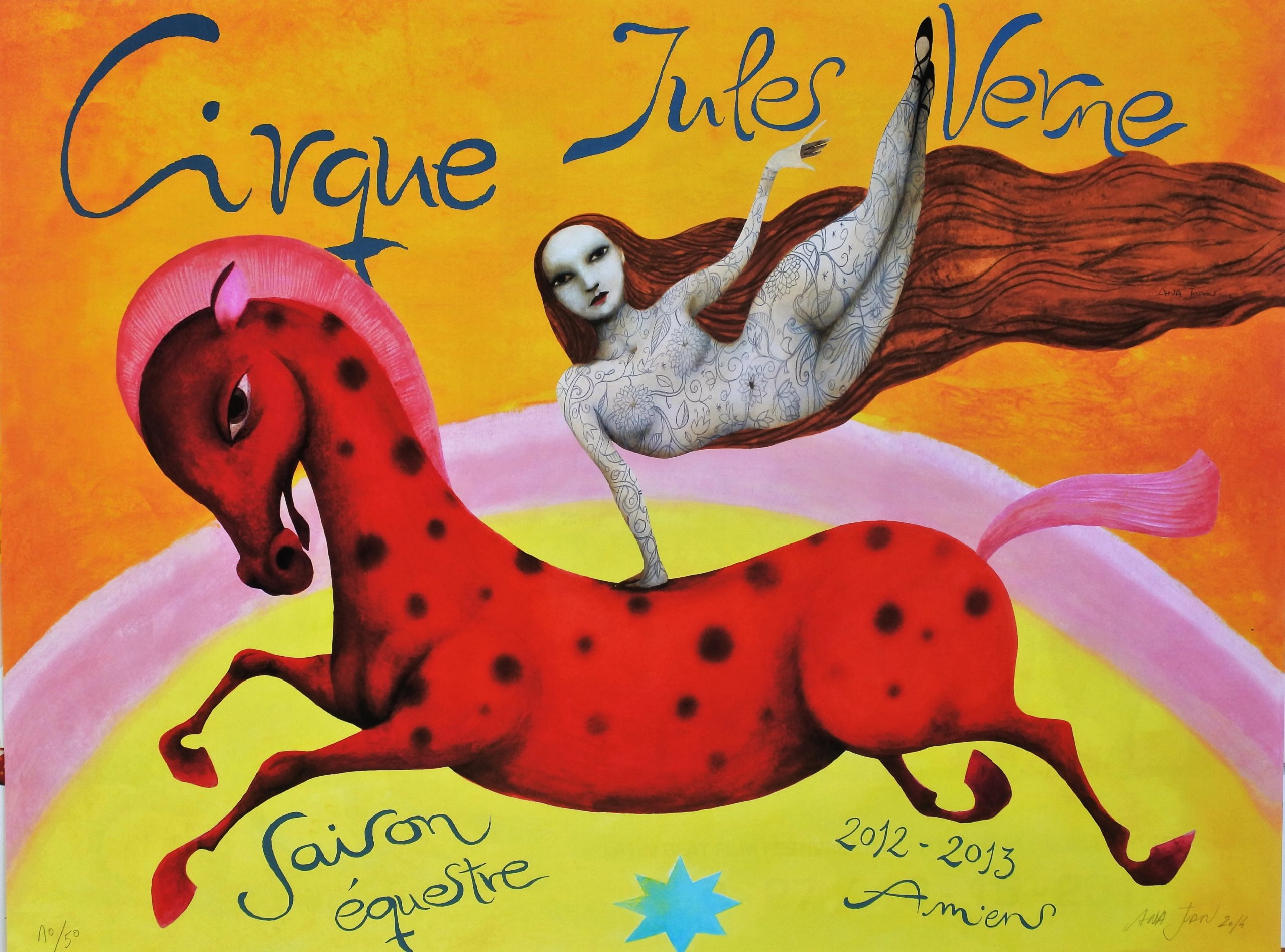 Ana Juan, Cirque Jules Verne, cartel litográfico original, edición limitada a 50 ejemplares, numerado y firmado a lápiz por la artista, 58×72 cms.