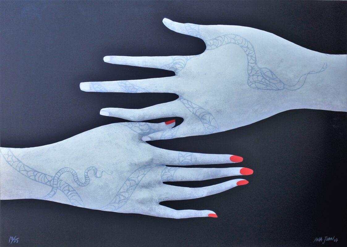 Ana Juan, Manos, estampa digital y serigrafia, edición 25 ejemplares, numerado y firmado a lápiz, 67×95 cms.