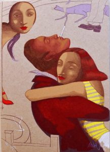 Ana Juan, Parejas en el bar I, serigrafía, edición 50 ejemplares, numerado y firmado a lápiz, 46×33 cms. Posible díptico con Parejas en el bar II