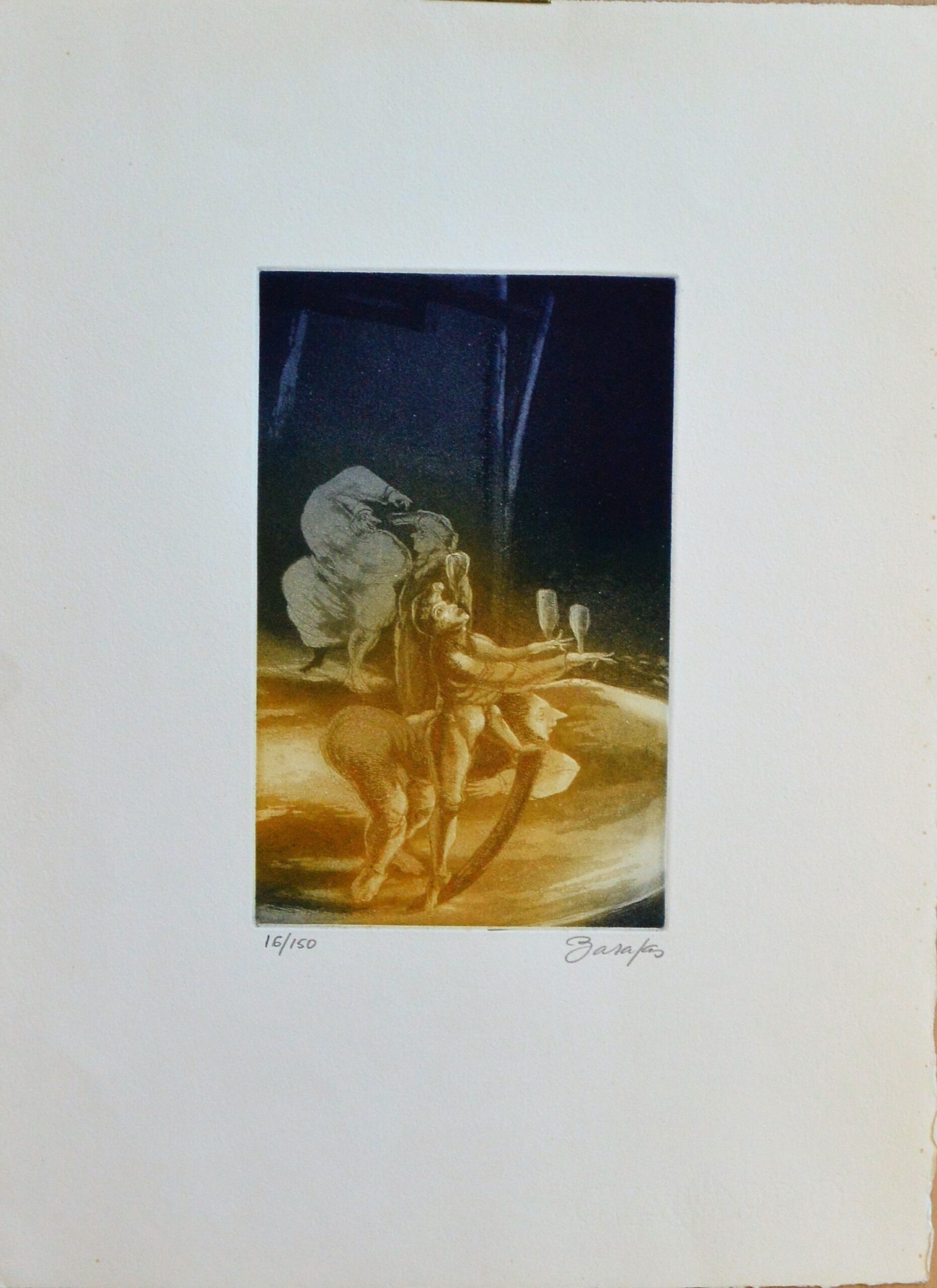 Andrés Barajas, Brindis a la luna, grabado, edición 150 ejemplares, numerado y firmado a lápiz, plancha 19×12 cms. y papel 38×28 cms.