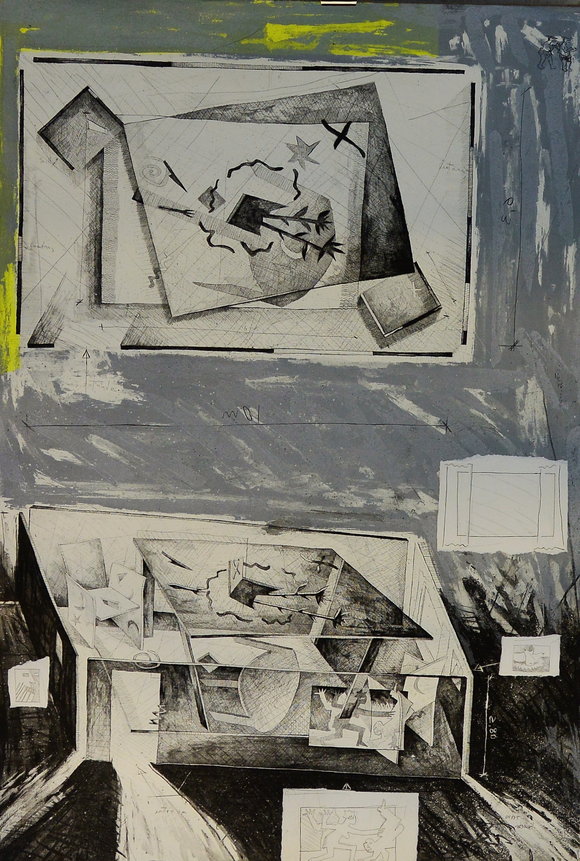 Andrés Nagel 1991, La mesa, aguafuerte y collage, edición 75 ejemplares, numerado y firmado a lápiz, 98×69 cms.