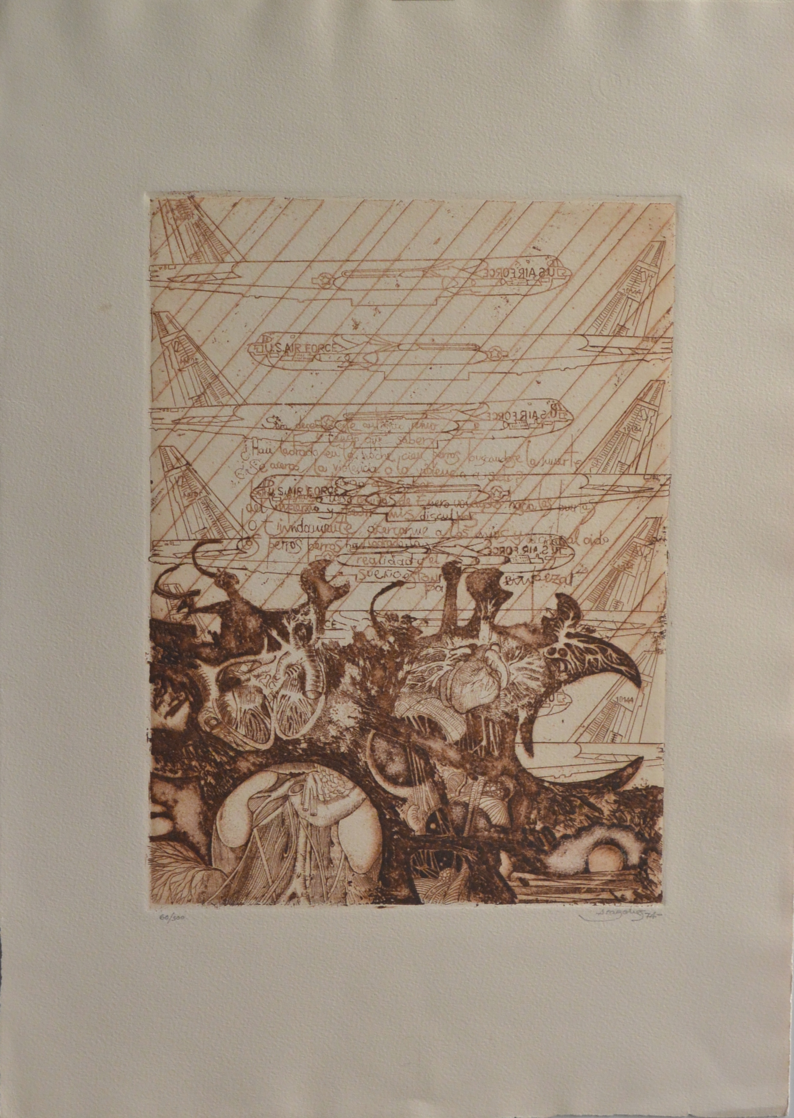 Angel Aragonés, Aviones Air Force, grabado edición 300 ejemplares, numerado y firmado a lápiz, plancha 33×24 y papel 53×27 cms.