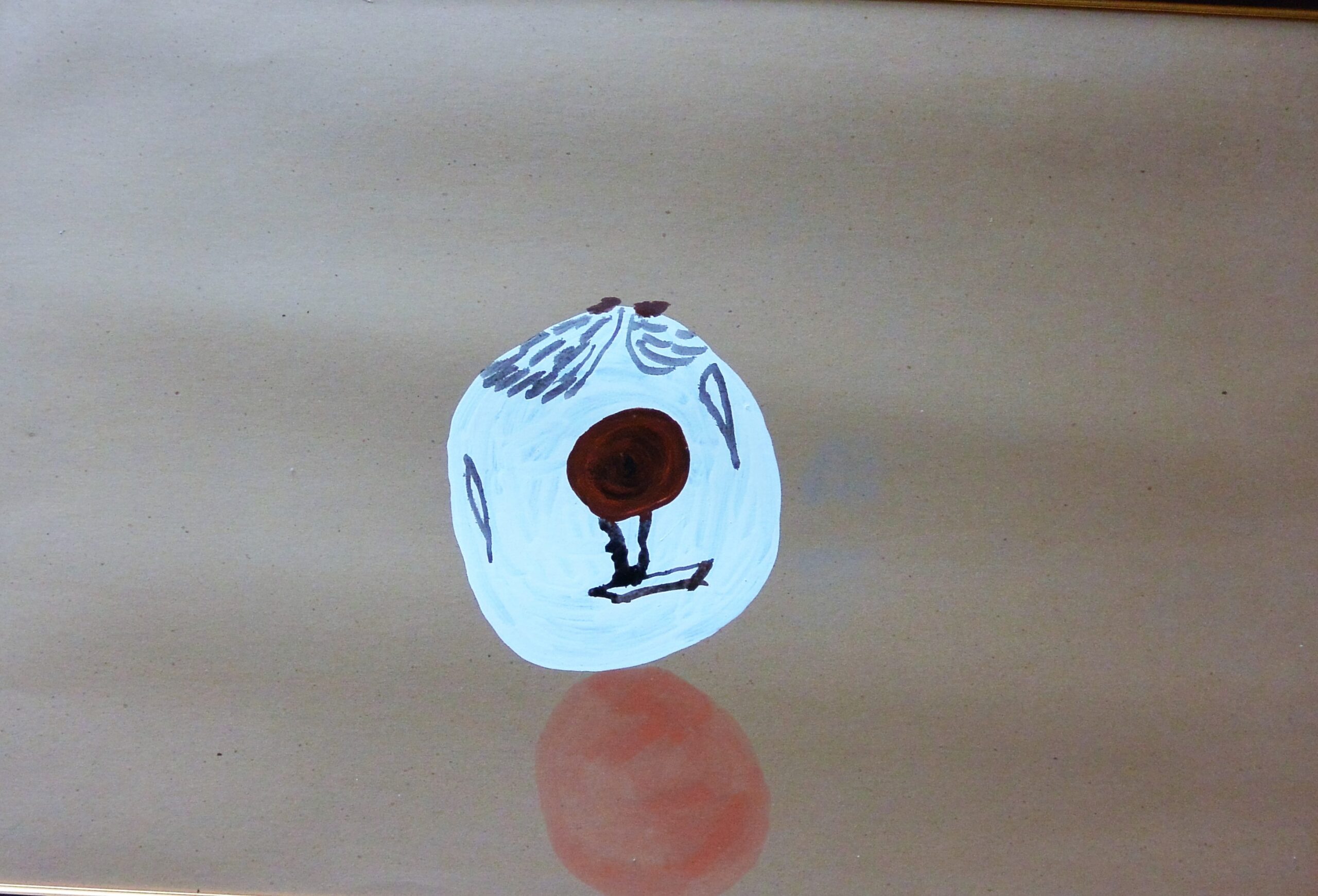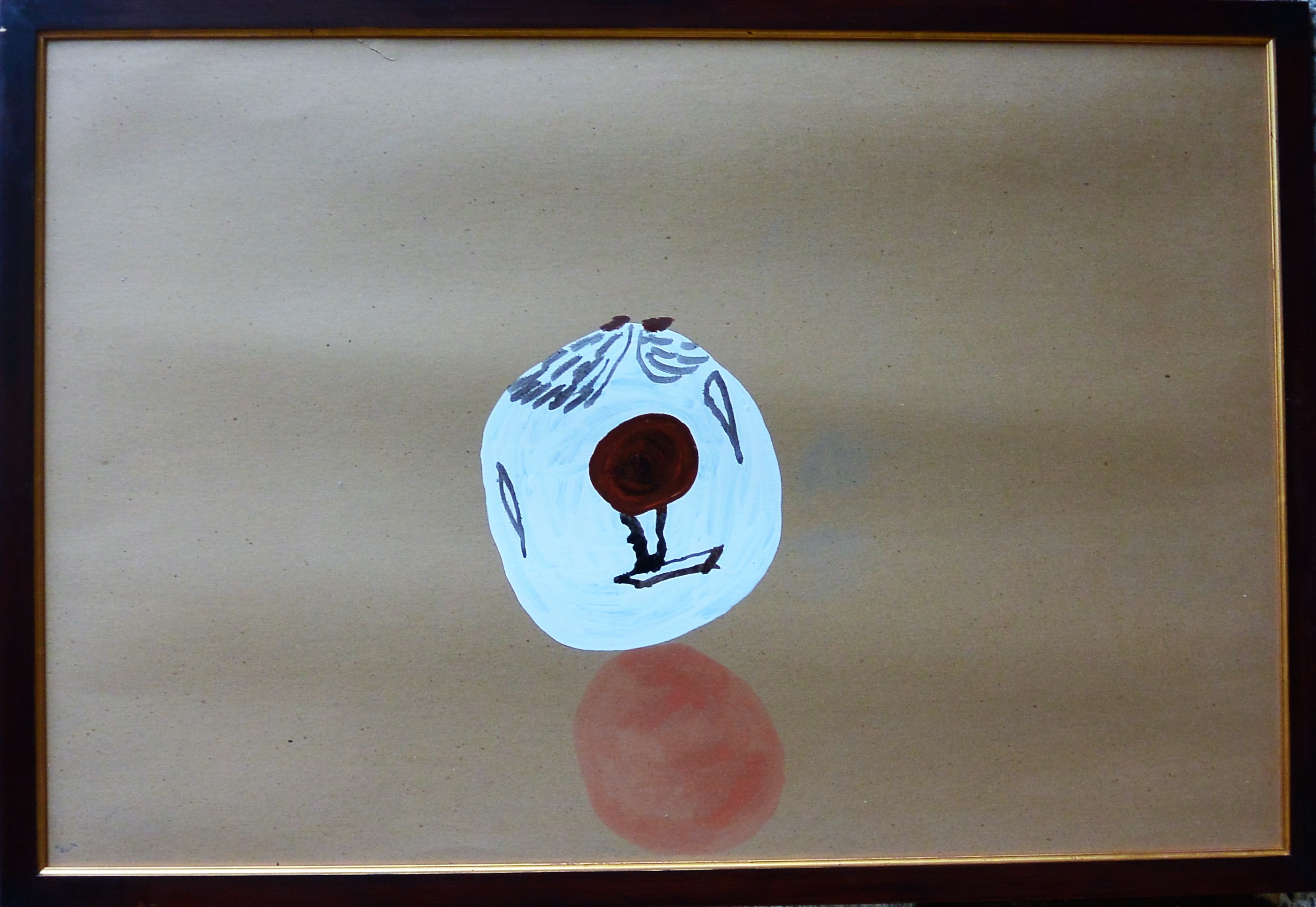 Antón Lamazares, Esfera blanca y bola, pintua oleo cartulina, enmarcado, pintura 76×113 cms y marco 82×119 cms.