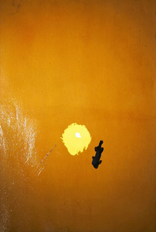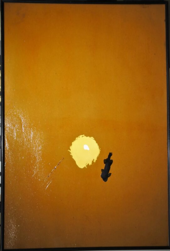 Antón Lamazares, Laguna amarilla, pintura oleo y barniz cartulina, enmarcado, pintura 115×77 cms. y marco 117×79 cms.