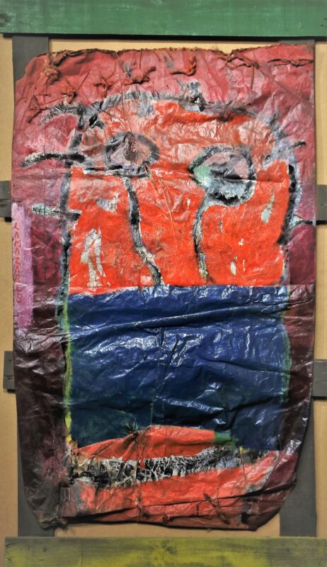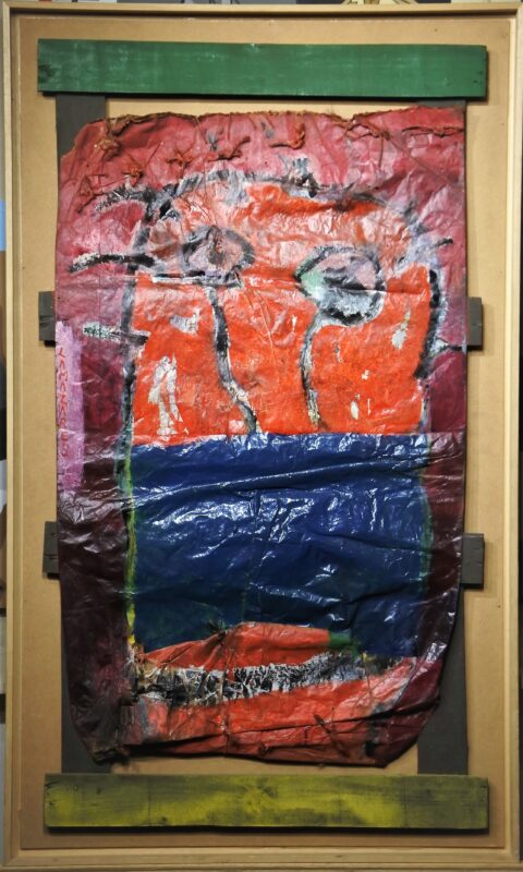 Antón Lamazares, Retrato imaginario, técnica mixta y collage sobre madera, enmarcado, obra 112×64 cms. y marco 123×74 cms.
