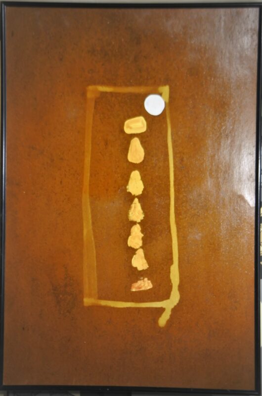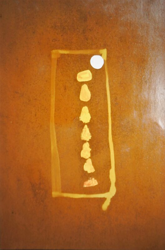 Antón Lamazares, Ventana de lunas, pintura oleo y barniz cartulina, enmarcado, pintura 115×77 cms. y marco 117×79 cms.