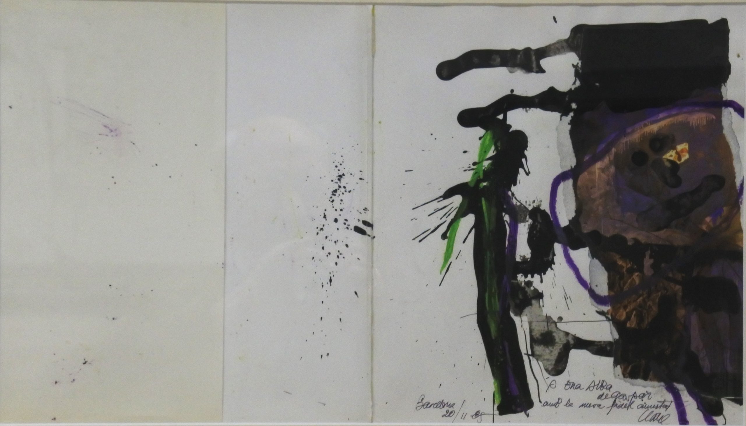 Antoni Clavé – «Personatge» pintura original acrílico sobre tapas de catálogo, dedicado, datado 1985 y firmado con tinta, enmarcado