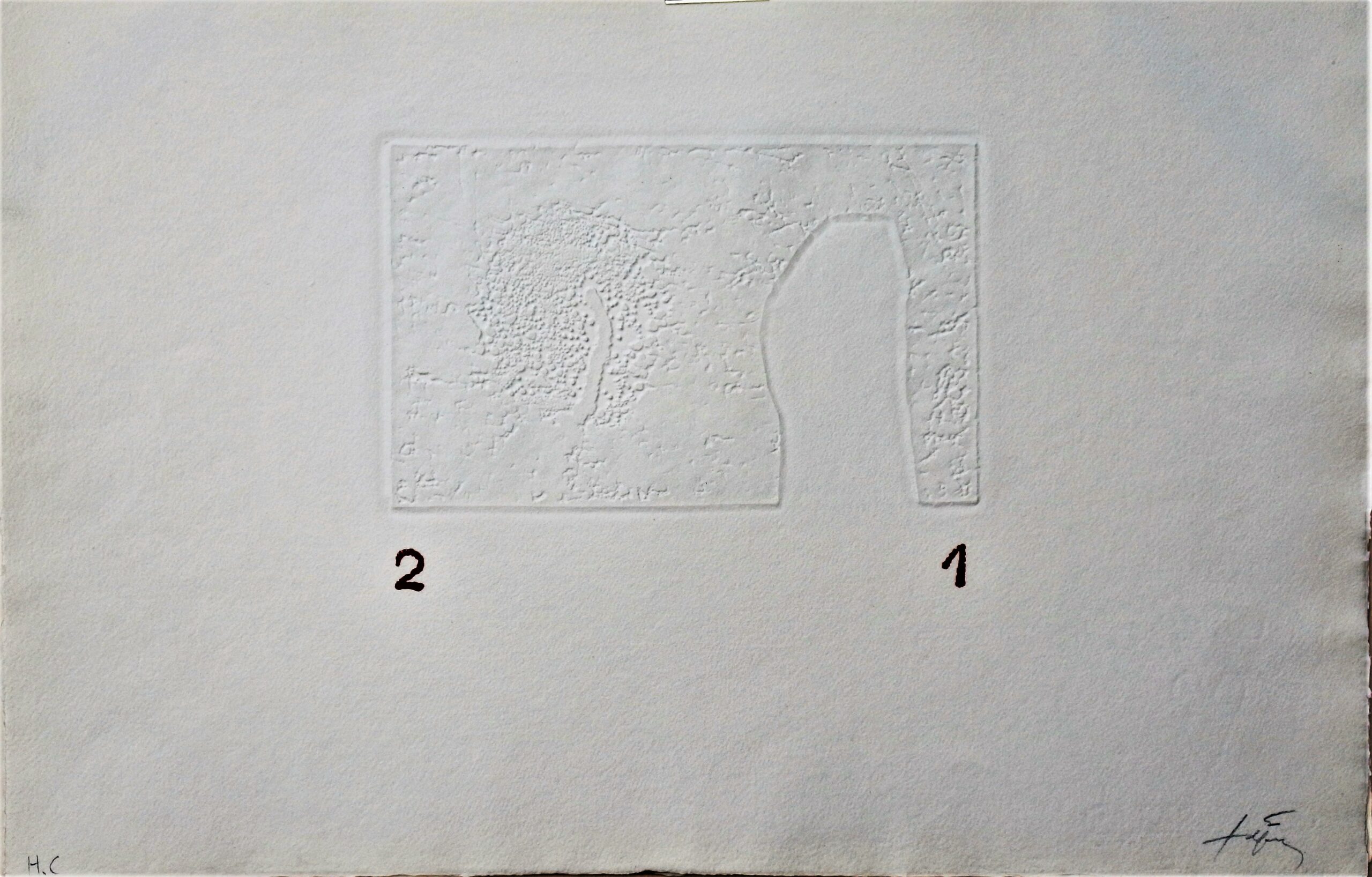 Antoni Tapies, Deux et un 1.976, grabado aguafuerte, edición 50 ejemplares, numerado h.c. y firmado a lápiz, 33×51 cms.