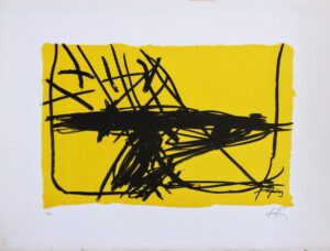 Antoni Tapies, Frégoli, L en negre i groc, litografia, edición 100 ejemplares, numerado p.a. y firmado a lápiz, 38×51 cms.