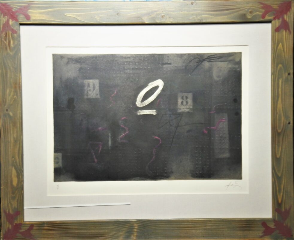 Antoni Tapies, Graffiti, litografia, edición 75 ejemplares, numerado y firmado a lápiz, enmarcado, obra 48×65 cms. y marco 72,50×88,50 cms.