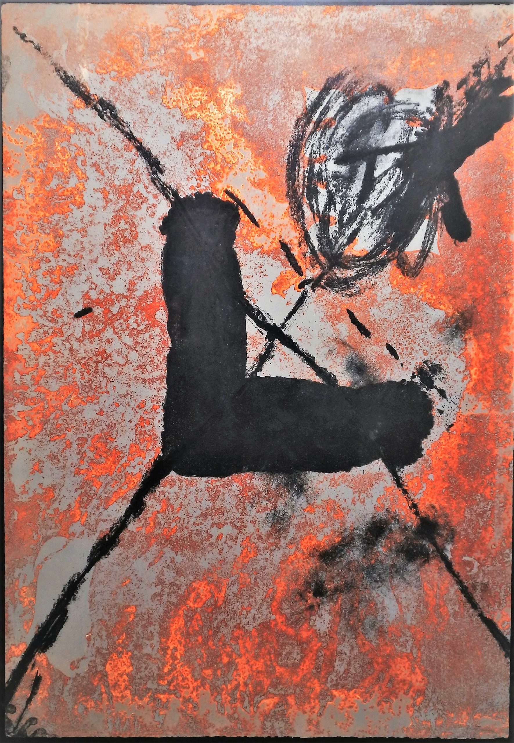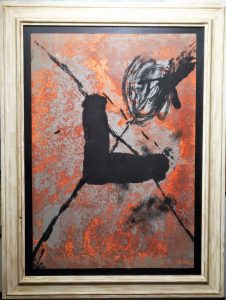 Antoni Tapies – «L sur rouille» Aguafuerte y materia plástica en varias tintas sobre fondo entintado a rodillo, enmarcado