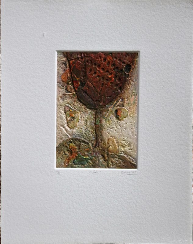 Antonio Jimenez, Hele, grabado y gofrado papel artesanal, edición 99 ejemplares, numerado, datado 1997 y firmado a lápiz, plancha 24,50×17 cms y papel 51×40 cms.