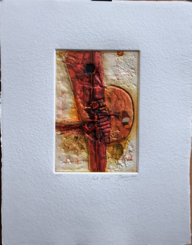 Antonio Jimenez, Pink cross, grabado y gofrado papel artesanal, edición 99 ejemplares, numerado, datado 1994 y firmado a lápiz, plancha 23,50×16 cms y papel 47×36 cms.
