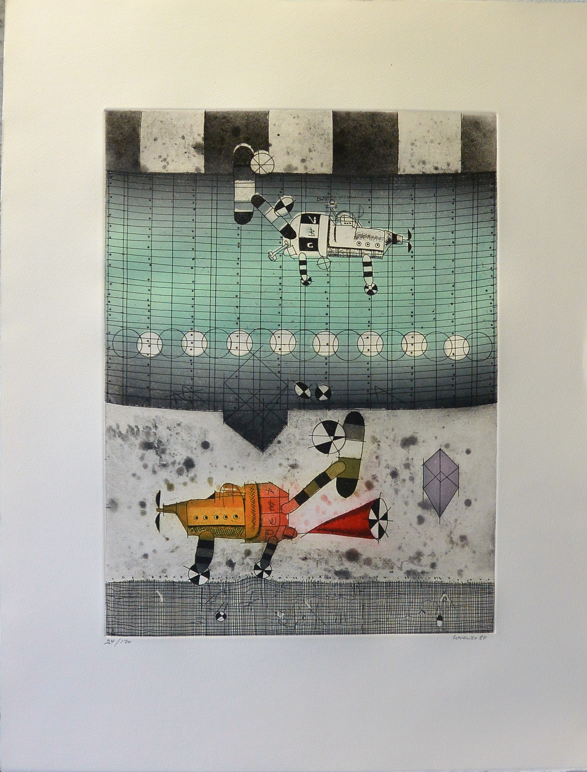 Antonio Lorenzo 1984 – «Trama cinco, Quiero que te quiero verde» grabado aguafuerte color