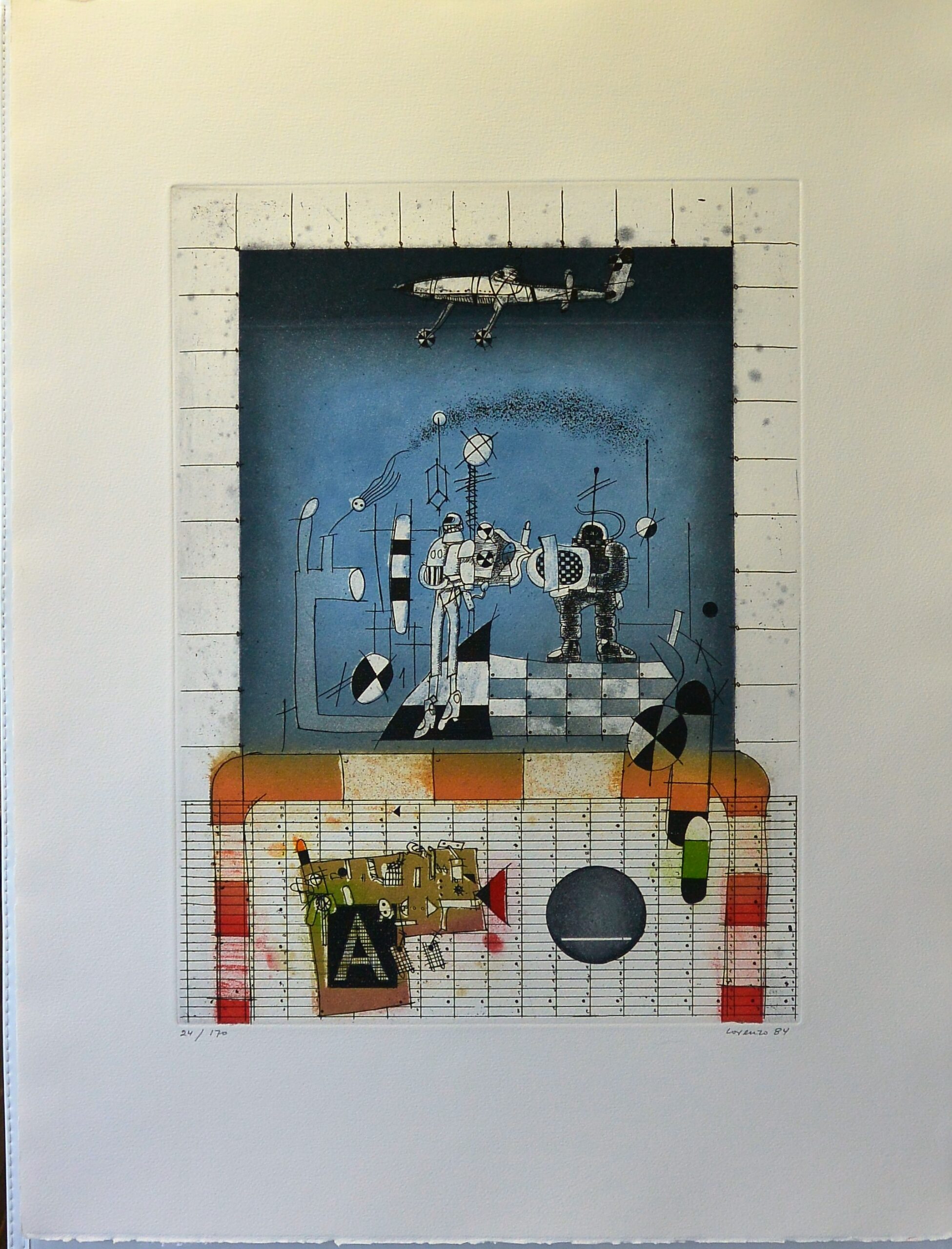 Antonio Lorenzo 1984, Trama siete, El azul de mis amores, grabado aguafuerte color, edición 170 ejemplares, numerado y firmado a lápiz, plancha 44×32,50 cms. y papel 67×50 cms.