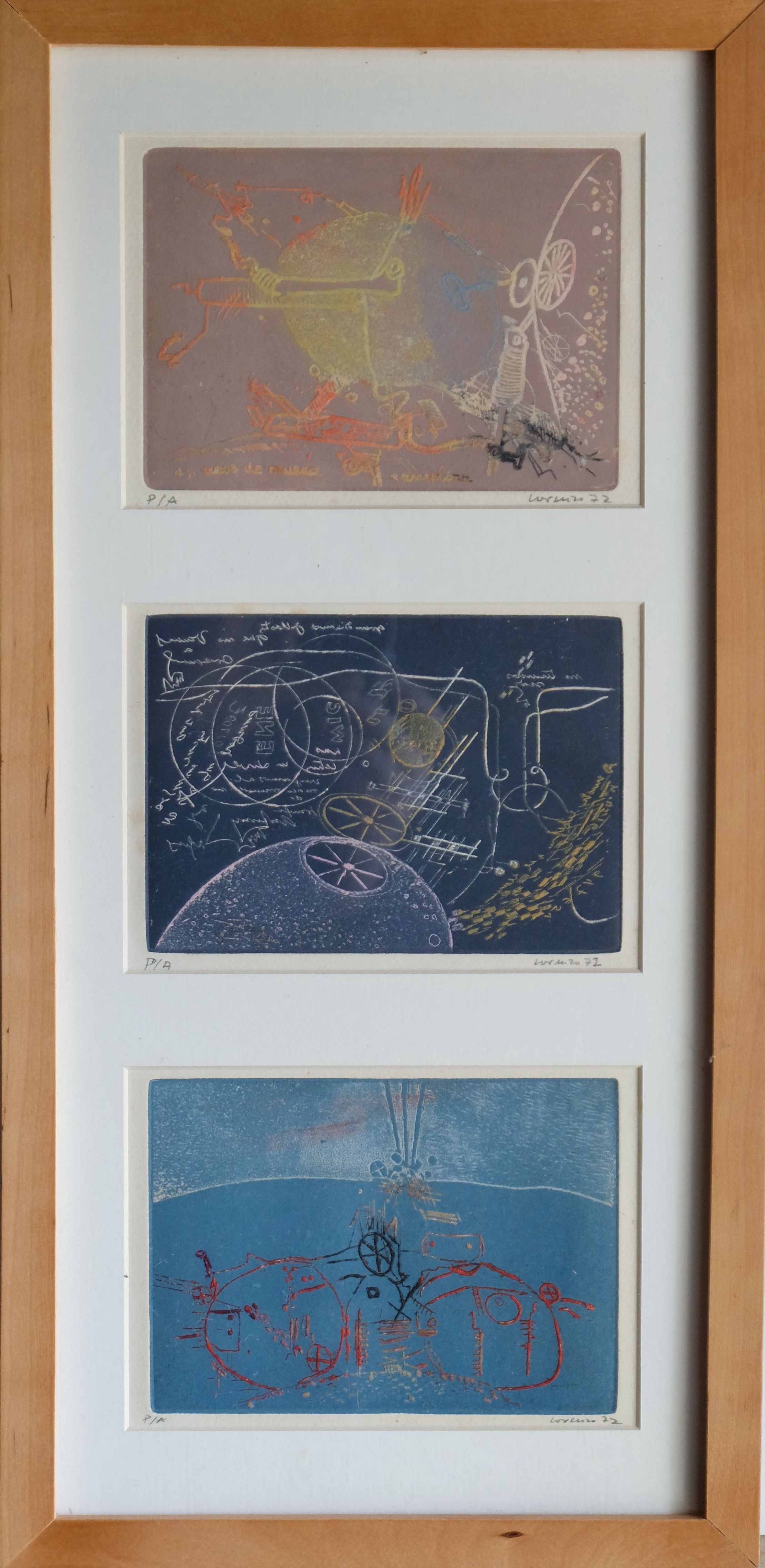 Antonio Lorenzo, 3 serigrafías 13×18 cms. cada una en un mismo marco I. Numeradas y firmadas a lápiz. Medidas marco 52×25,50 cms.