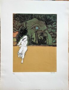 Antonio R. Marcoida, Fábula de Polifemo y Galatea V, grabado aguafuerte y punta seca, edición 195 ejemplares, numerado y firmado a lápiz, plancha 32,50×24,50 cms. y papel 50×38 cms.