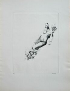 Antonio R. Marcoida, Fábula de Polifemo y Galatea VIII, grabado aguafuerte y punta seca, edición 195 ejemplares, numerado y firmado a lápiz, plancha 32,50×24,50 cms. y papel 50×38 cms.