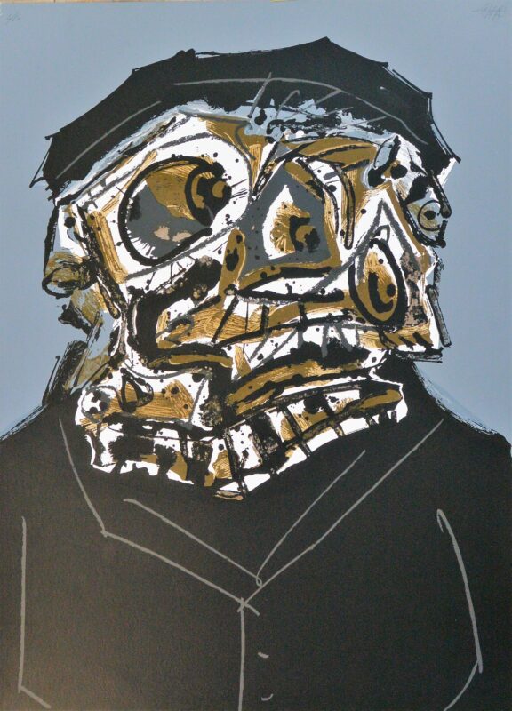 Antonio Saura 1973, Retrato imaginario de Rembrandt II, serigrafia, edición 60 ejemplares, numerado y firmado a lápiz, 69×50 cms.