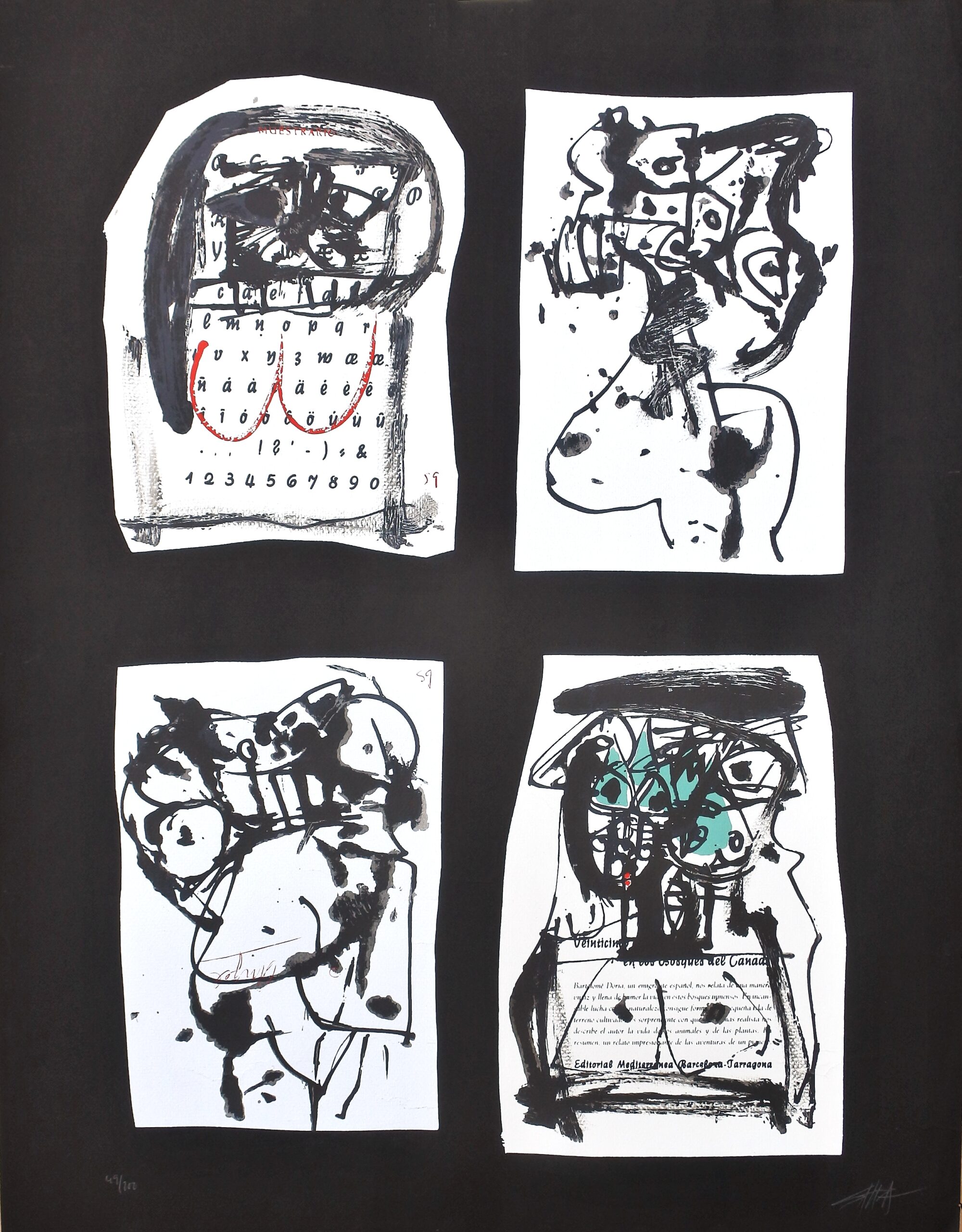 Antonio Saura, Cuatro damas, serigrafia y litografia, edición 200 ejemplares, numerado y firmado a lápiz, 65×50 cms.