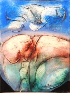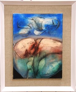 Antonio Suarez, Acercamiento, pintura oleo y materia sobre lienzo, enmarcado, pintura 35×27 cms. y marco 48×41 cms