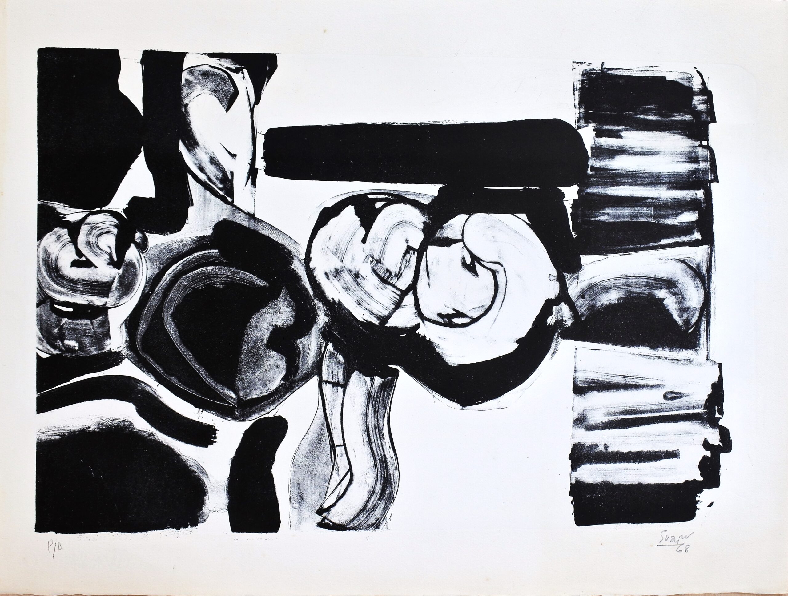 Antonio Suarez, Adornos, litografía blanco y negro, edición 20 ejemplares, numerado p.a., datado 68 y firmado a lápiz, 48×63 cms.