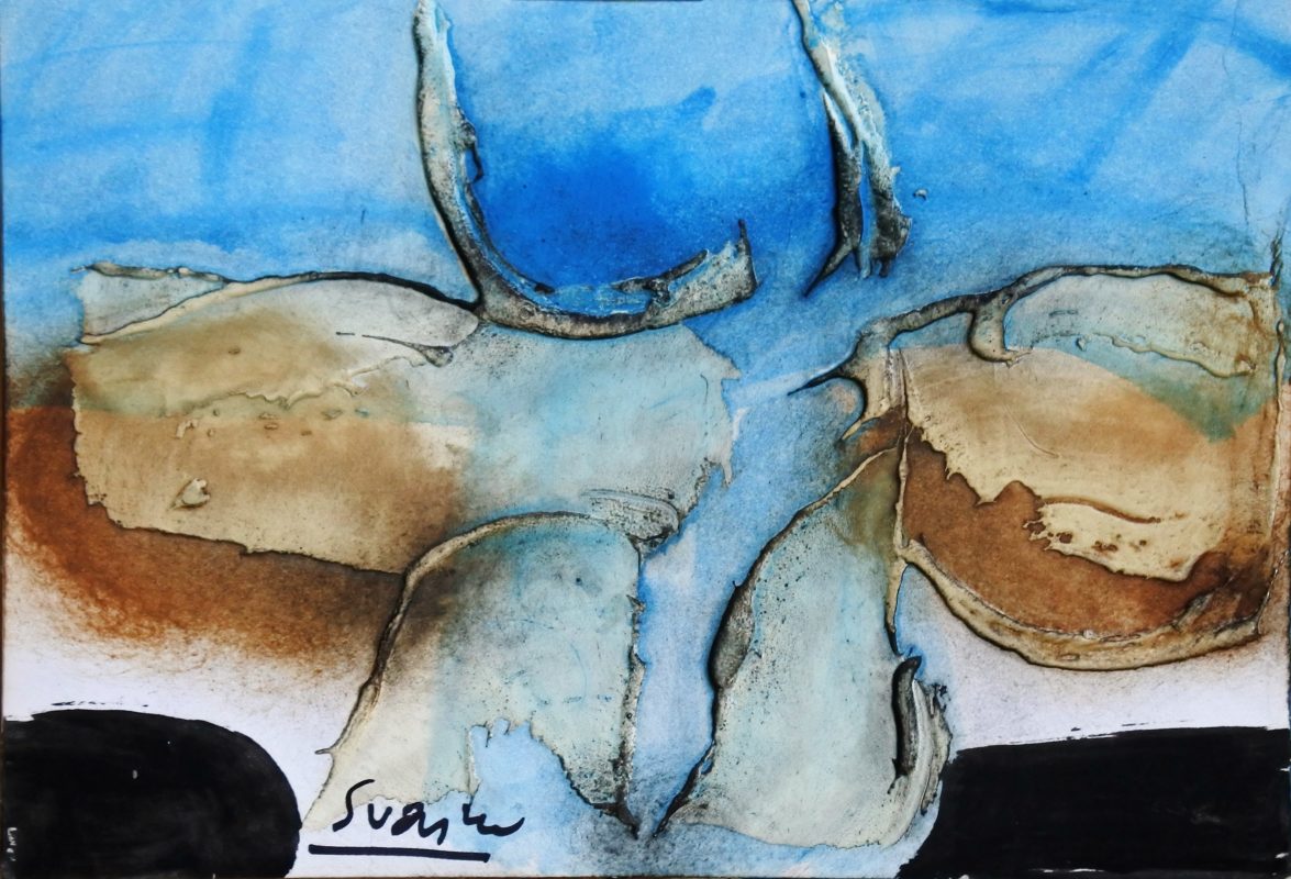 Antonio Suarez, Azul emergente, pintura original técnica mixta cartulina, 17,50×25 cms.