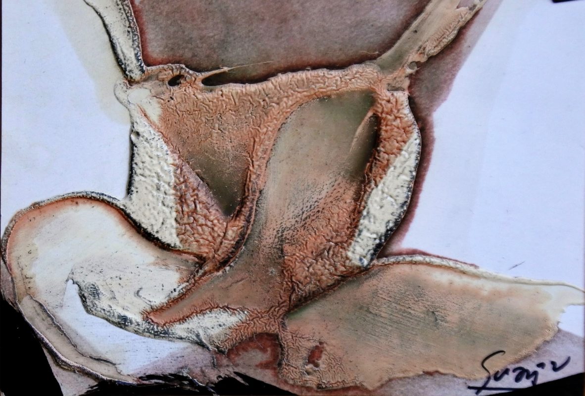Antonio Suarez, Beige sobre blanco, pintura original técnica mixta cartulina, 19,50×15,50 cms.