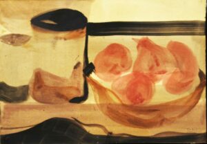Antonio Suarez, Bodegón de la boda, pintura acrílico cartulina, enmarcado, pintura 35×50 cms y marco 40,50×55 cms.