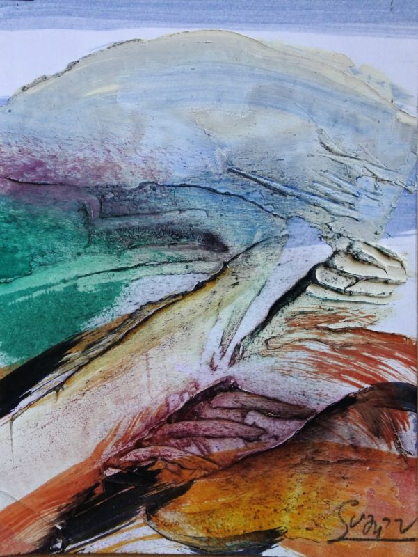 Antonio Suarez, Cerca del Monte Pelado, pintura original técnica mixta cartulina, 17×13 cms.